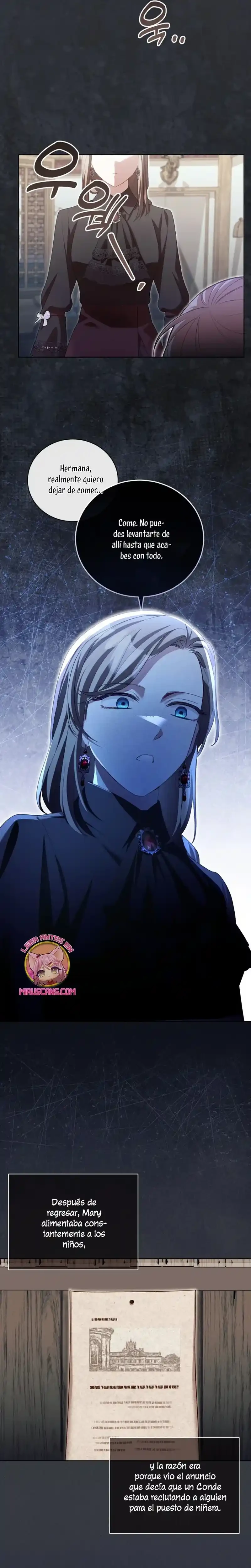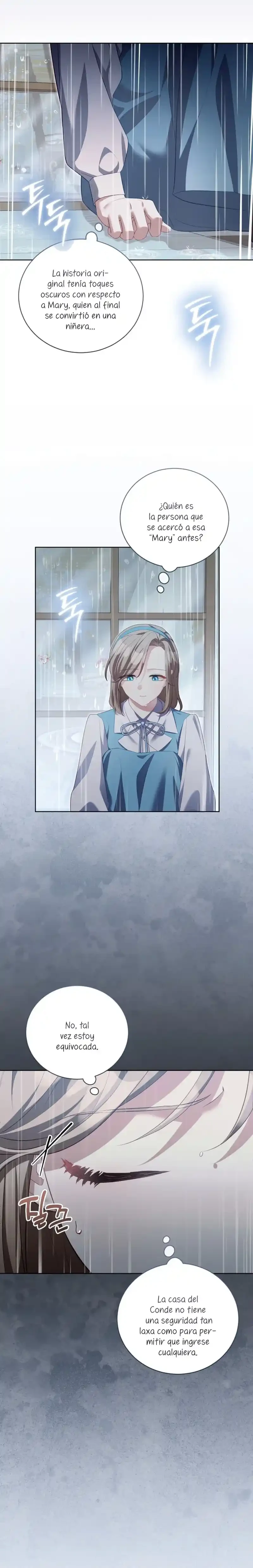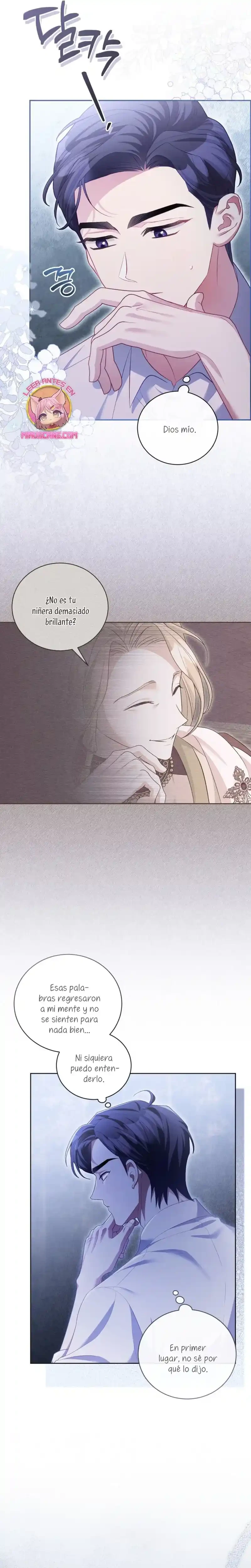Cuando abrí los ojos, me había convertido en Marie, la niñera del libro. Y lo que es más, ¡me habían asignado el papel de matar al joven amo al que se suponía que debía cuidar, Brielle...! «¿Qué será de Brielle si me voy? Seguro que no morirá...». Sí, tal vez vine aquí para salvar a Brielle después de todo. Gracias a mi experiencia previa como maestra de guardería, salvé a Brielle, y yo misma me estoy adaptando bien... ¡pero no puedo dejar de preocuparme por el tío de Brielle! Él era el villano en la historia original, así que ¿por qué está siendo tan amable? «Hermano, te extraño. Me pregunto si lo estoy criando bien». Un diario sobre el cuidado infantil con Kentrail, el tío que solo desea la felicidad de su sobrina. ¿Podrá este diario sobre el cuidado infantil terminar realmente con Brielle creciendo feliz? ¿Quién demonios ordenó a «Mari» que matara a Brielle?
