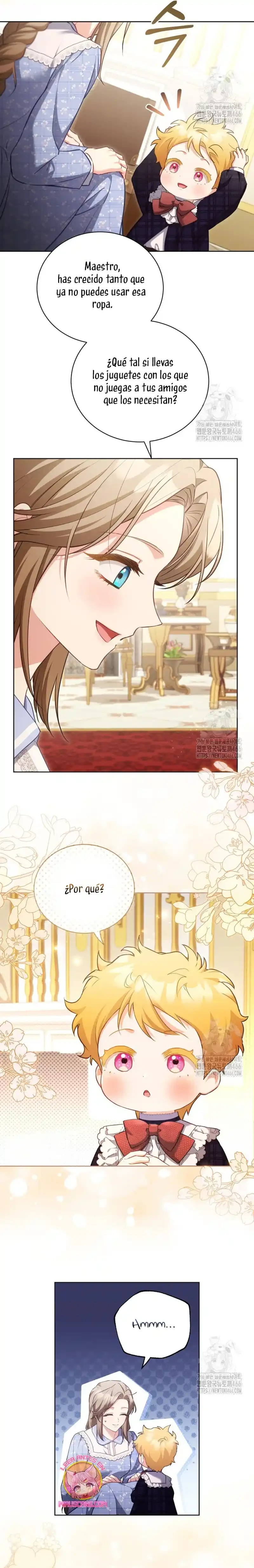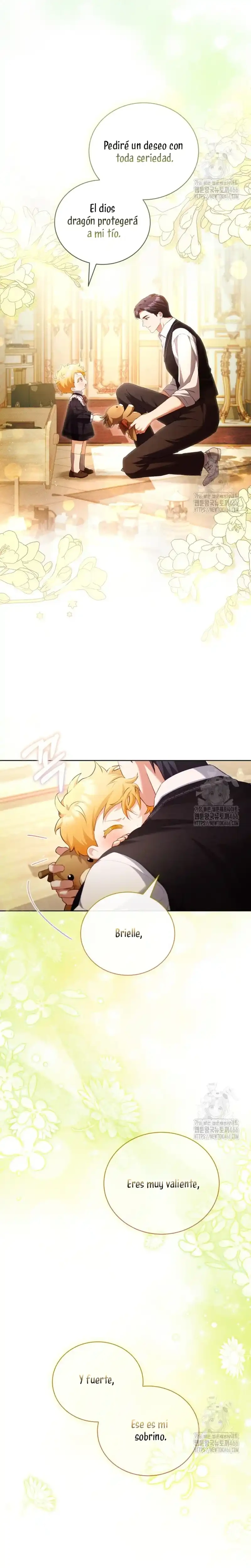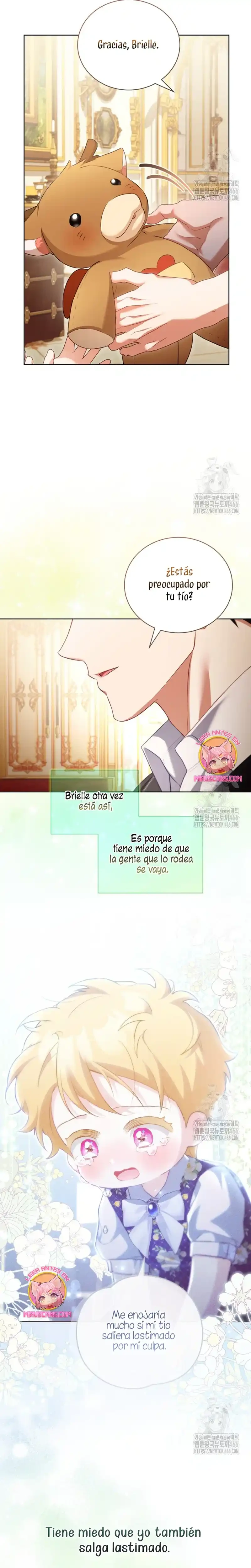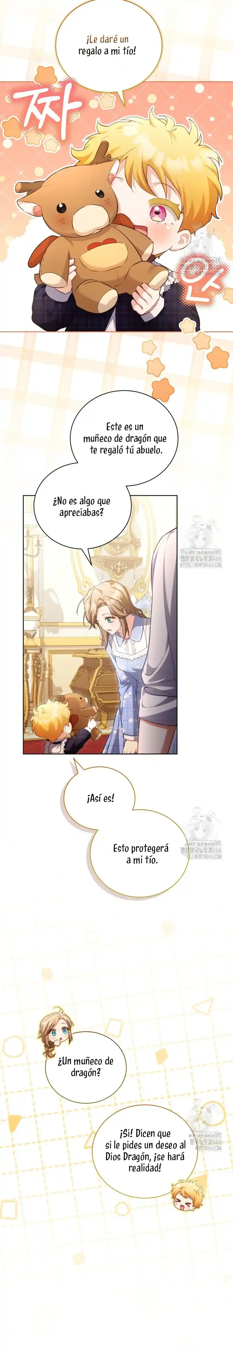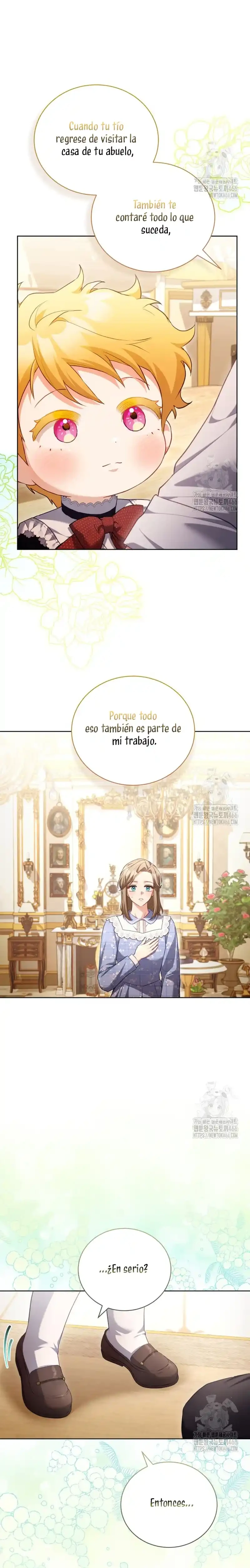 Cuando abrí los ojos, me había convertido en Marie, la niñera del libro. Y lo que es más, ¡me habían asignado el papel de matar al joven amo al que se suponía que debía cuidar, Brielle...! «¿Qué será de Brielle si me voy? Seguro que no morirá...». Sí, tal vez vine aquí para salvar a Brielle después de todo. Gracias a mi experiencia previa como maestra de guardería, salvé a Brielle, y yo misma me estoy adaptando bien... ¡pero no puedo dejar de preocuparme por el tío de Brielle! Él era el villano en la historia original, así que ¿por qué está siendo tan amable? «Hermano, te extraño. Me pregunto si lo estoy criando bien». Un diario sobre el cuidado infantil con Kentrail, el tío que solo desea la felicidad de su sobrina. ¿Podrá este diario sobre el cuidado infantil terminar realmente con Brielle creciendo feliz? ¿Quién demonios ordenó a «Mari» que matara a Brielle?