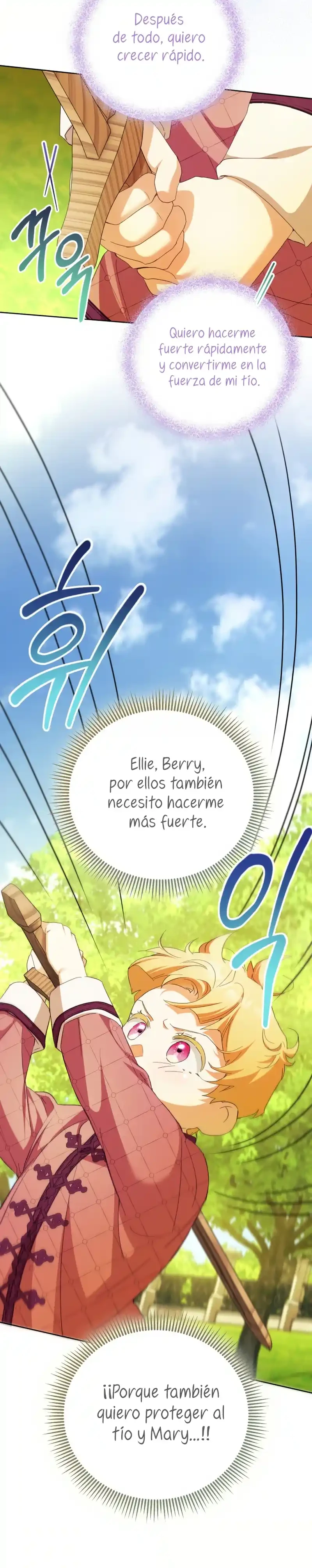 Cuando abrí los ojos, me había convertido en Marie, la niñera del libro. Y lo que es más, ¡me habían asignado el papel de matar al joven amo al que se suponía que debía cuidar, Brielle...! «¿Qué será de Brielle si me voy? Seguro que no morirá...». Sí, tal vez vine aquí para salvar a Brielle después de todo. Gracias a mi experiencia previa como maestra de guardería, salvé a Brielle, y yo misma me estoy adaptando bien... ¡pero no puedo dejar de preocuparme por el tío de Brielle! Él era el villano en la historia original, así que ¿por qué está siendo tan amable? «Hermano, te extraño. Me pregunto si lo estoy criando bien». Un diario sobre el cuidado infantil con Kentrail, el tío que solo desea la felicidad de su sobrina. ¿Podrá este diario sobre el cuidado infantil terminar realmente con Brielle creciendo feliz? ¿Quién demonios ordenó a «Mari» que matara a Brielle?