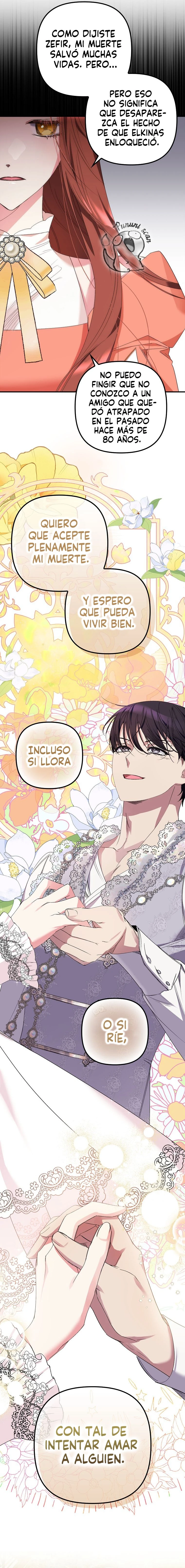 Como camarada del héroe, morí tras bloquearle el aliento del malvado dragón. Bueno, está bien. El Héroe Elkinas era el único amigo en el que confiaba para que me cubriera las espaldas. Me iré con una explosión, supongo, para que el héroe pueda casarse con una mujer bonita y vivir el resto de su vida.