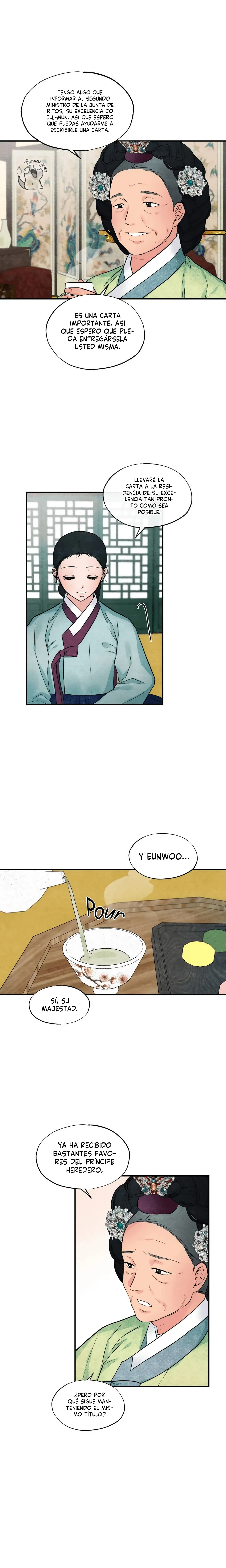 Insira a descrição aqui....Eun-Woo trabajaba en silencio como dama de la corte y esperaba convertirse en una Jimil Sanggung, una sirvienta exclusiva de la familia real. Tras 15 años de vida en la corte, finalmente recibe el favor del Príncipe Heredero. Después de emborracharse, el Príncipe visita a Eun-Woo sólo una vez. Pero no deja de pensar en ella... Esta es una historia sobre Lee Hyun, un Príncipe Heredero solitario pero sobresaliente, y la Dama de la Corte Eun-Woo, que quería vivir una vida sencilla.