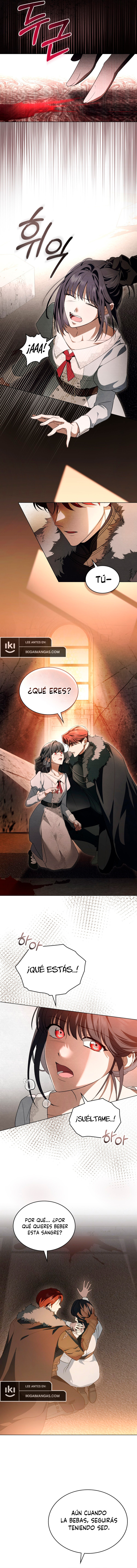 'Quiero gustarte. Hasta el punto de que pierdas tu propio ser.' En el invierno de sus veinte años, Verónica lo perdió todo. Su hogar, sus amigos, su familia, y hasta su futuro como humana. Sus ojos rojos, teñidos por el monstruo en su interior, solo le muestran escenas horribles... Pero entonces, Leon Berk, un hombre que alguna vez fue un caballero sagrado, le hace una propuesta. 'Di que quieres vivir, aunque tengas que arrastrarte por el fuego del infierno.' 'Creo que solo tú puedes poner fin a este desastre.' La única forma de salvar a una mujer convertida en monstruo es un beso con el aliento divino. Mientra recibe el beso de un hombre que no tiene sentimientos por ella, Verónica piensa. 'Quisiera que me amaras.'
