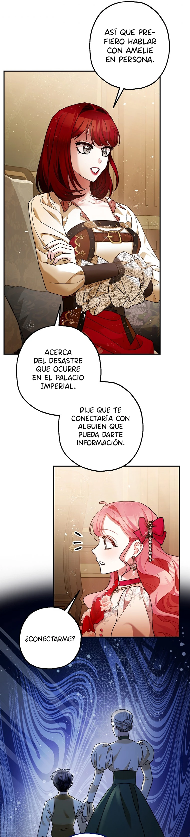 El hecho de que critique una novela no significa que tengas que convertirme en el personaje secundario Amelie, quien murió desde el principio, convirtiéndose en el trauma y desencadenante de la heroína. Tengo miedo. No quiero morir. No quiero que me acosen. ¡Huyamos! Pero justo cuando Amelie visitó a su familia para informarles de su partida, llegó el Emperador (el tirano). Para escapar, me transformé en un pájaro por arte de magia. ¡¡¡Pero el Emperador me llevó con él !!! ¡¿Qué me va a pasar ?!