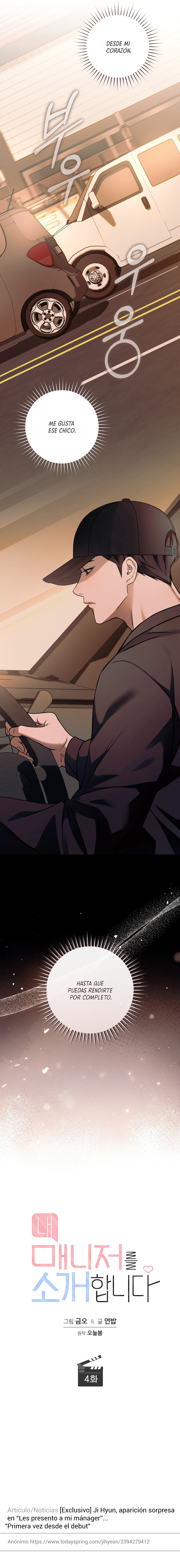 Posted By thekittorgmailcom - 1 mes ago Feliz lectura de manhwa Les presento a mi mánager Capítulo 4 , No olvides hacer clic en el botón Me gusta y compartir. Manhwas Les presento a mi mánager Siempre actualizado sobre Cartel De Manhwas. No olvides leer otras actualizaciones de manhwa. Lista de colecciones de manhwa Cartel De Manhwas está en el menú Lista de manhwa.