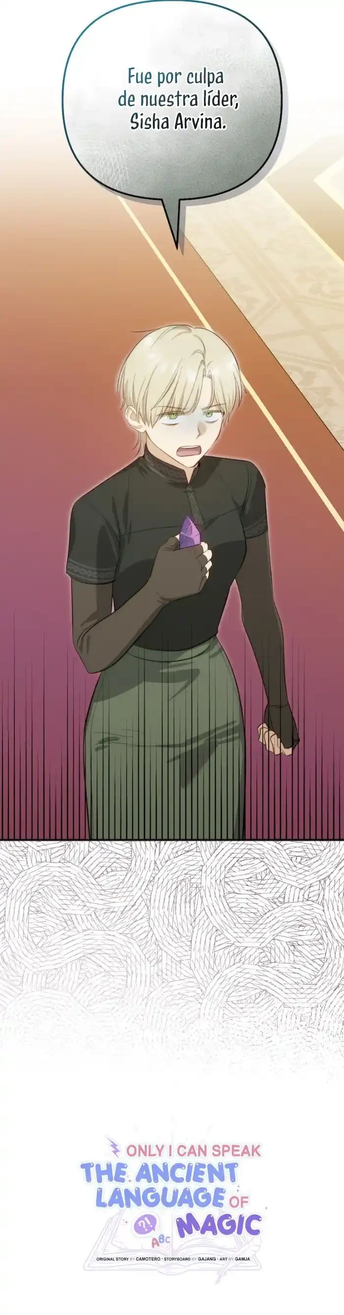 Despertarse en una novela de fantasía ambientada en un antiguo mundo mágico fue lo suficientemente confuso para Sisha. Pero además de eso, resulta que ella es la única persona que puede leer y entender los textos antiguos recuperados de la biblioteca secreta mantenida oculta durante miles de años... Y, para sorpresa de Sisha, el antiguo lenguaje de la magia prohibida resultó ser ¡no más que otro que el inglés moderno! ahora que el emperador elogia su habilidad para descifrar las palabras del alfabeto, Sisha pasa de ser una mera compañera a una increíble protagonista principal, en un mundo donde todo lo que habla en su lengua materna es la clave para desbloquear la poderosa magia.