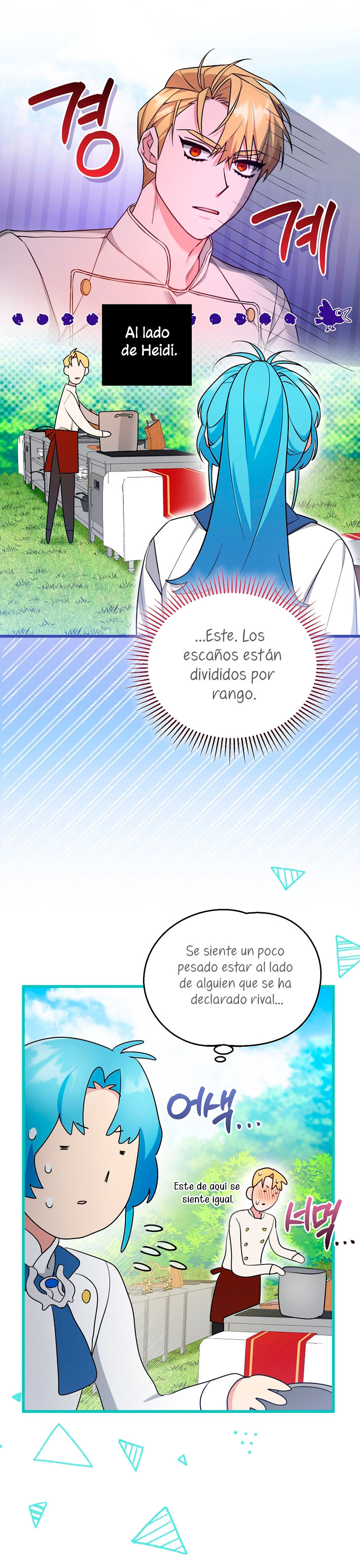 Se convirtió en la villana de una novela y la echaron de su casa tras cometer varios actos malvados. Se vio obligada a convertirse en vendedora ambulante para llegar a fin de mes....... Fue secuestrada por Black Mack, el príncipe de un imperio lejano. "La razón por la que te he traído aquí es porque quiero que seas mi cocinera". No, así no se hace la exploración. Pensé que iba a ser la cocinera personal del Emperador y tener un ascenso suave pero sin incidentes a la cima....... * * * "Nunca pensé que la comida pudiera saber así, ¡por favor, acéptame como aprendiz!" gritó el niño genio alquimista, "Eres el único cocinero que reconozco, así que no dejes de cocinar nunca. ¿Lo entiendes?" El cocinero rival, que al principio se mostró asustadizo, "¡Arrrr!", y el misterioso zorro mascota, que es dócil conmigo pero feroz con los demás. Todos se enamoraron de mi comida y, sobre todo, de ........ "Estáis bajo mi protección, así que no temáis nada". ¿Por qué Kylos Obern, que aparentemente era una figura sombría la temporada pasada, se preocupa tanto por mí?