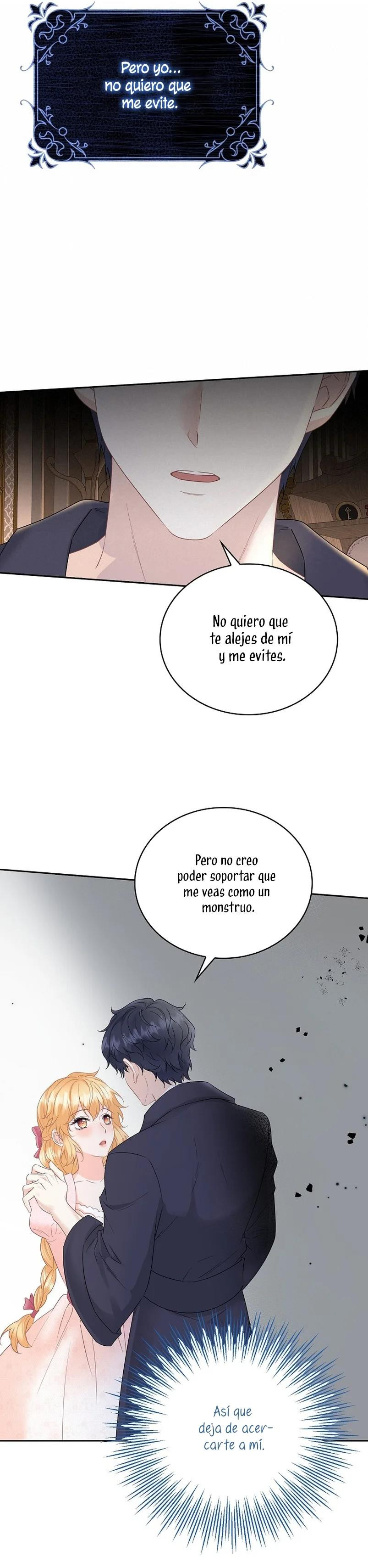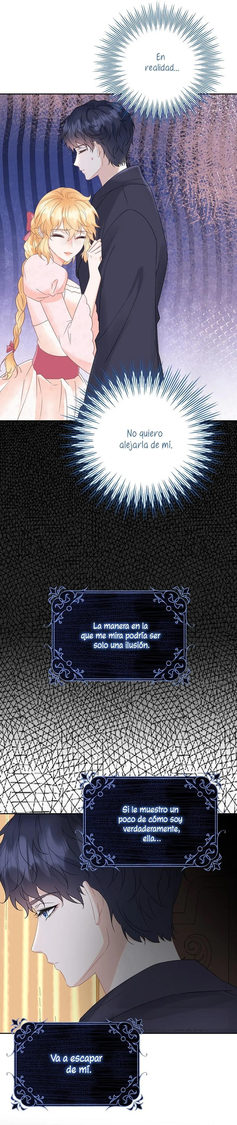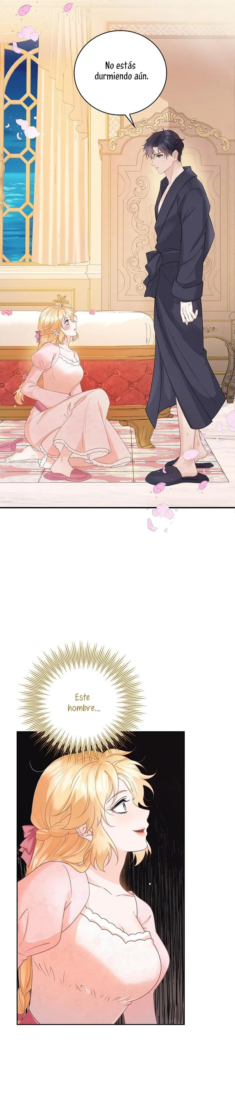 Cuando abrí los ojos, este no era mi cuerpo. ¿Dónde estoy? ¿Quién soy? Además, ¿quién es este hombre con aspecto hermoso que duerme a mi lado…? – El nombre de la señora es ‘ Delice Levanister’…. ¿Eh? ¡Increíble! ¡¿No es ese el nombre de la villana de la novela romántica que estaba obsesionada con leer hasta hace poco?! ¡¿Entonces, el hombre que más aprecio y amo es ‘ Roan von Banister ‘?! Roan es llamado el caballero azul del campo de batalla, pero es un protagonista secundario masculino que nació y se crió como un hijo ilegítimo. Un hombre lamentable cuya vida es destrosada incluso por la protagonista femenina. Roan, que sufre tanto, se suponía que debía cuidarlo bien… ¿Por qué pretendí ser una villana que lo torturó y finalmente se divorció de él? No, no puedo seguir el curso que me llevará a la muerte. Haré feliz a Roan, así que por favor, amémonos.