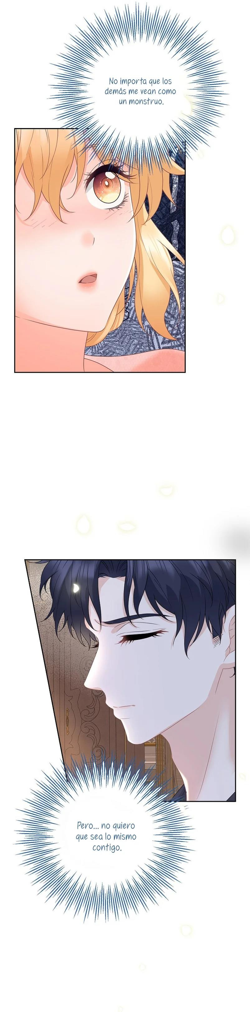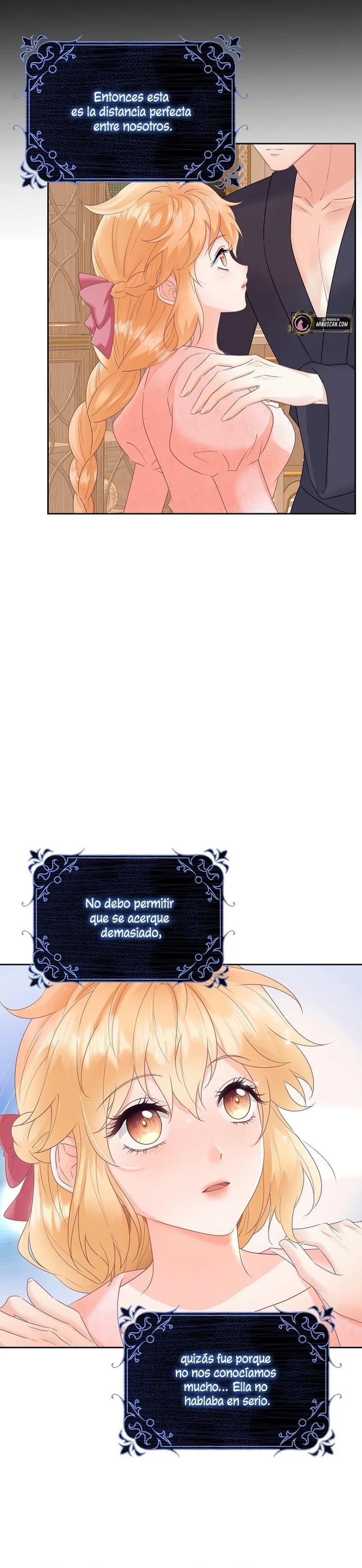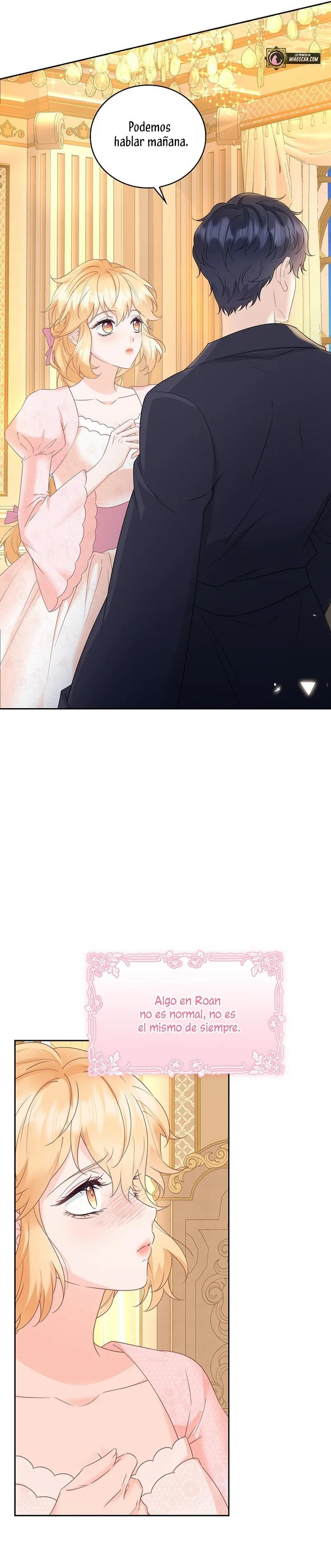 Cuando abrí los ojos, este no era mi cuerpo. ¿Dónde estoy? ¿Quién soy? Además, ¿quién es este hombre con aspecto hermoso que duerme a mi lado…? – El nombre de la señora es ‘ Delice Levanister’…. ¿Eh? ¡Increíble! ¡¿No es ese el nombre de la villana de la novela romántica que estaba obsesionada con leer hasta hace poco?! ¡¿Entonces, el hombre que más aprecio y amo es ‘ Roan von Banister ‘?! Roan es llamado el caballero azul del campo de batalla, pero es un protagonista secundario masculino que nació y se crió como un hijo ilegítimo. Un hombre lamentable cuya vida es destrosada incluso por la protagonista femenina. Roan, que sufre tanto, se suponía que debía cuidarlo bien… ¿Por qué pretendí ser una villana que lo torturó y finalmente se divorció de él? No, no puedo seguir el curso que me llevará a la muerte. Haré feliz a Roan, así que por favor, amémonos.