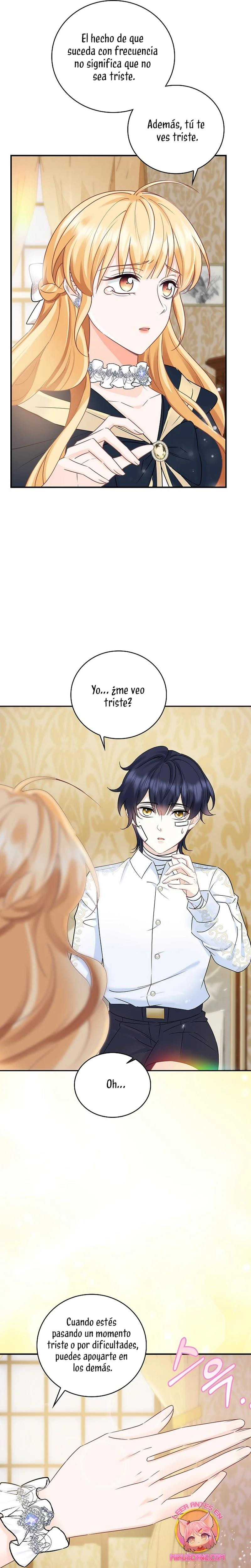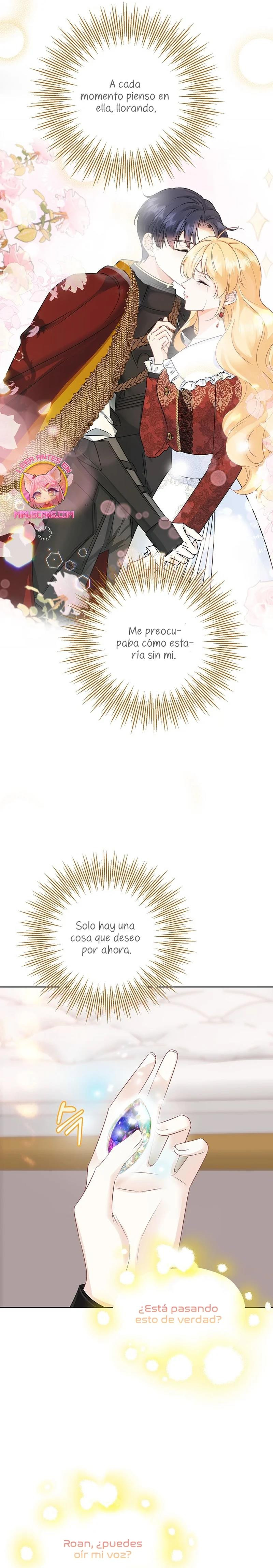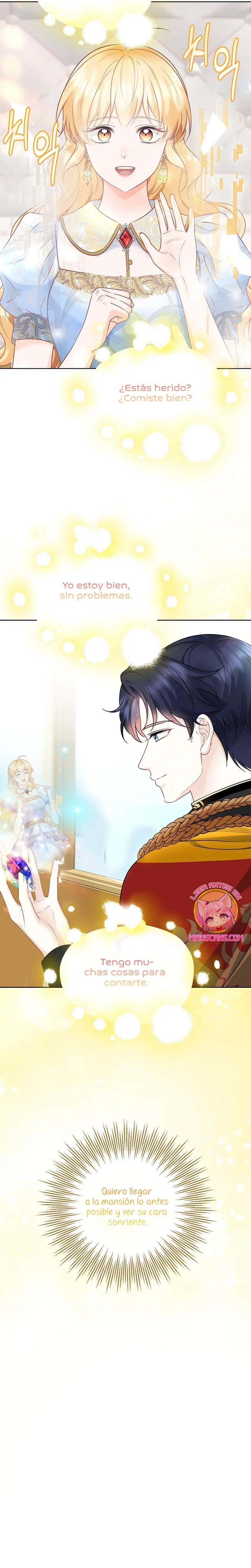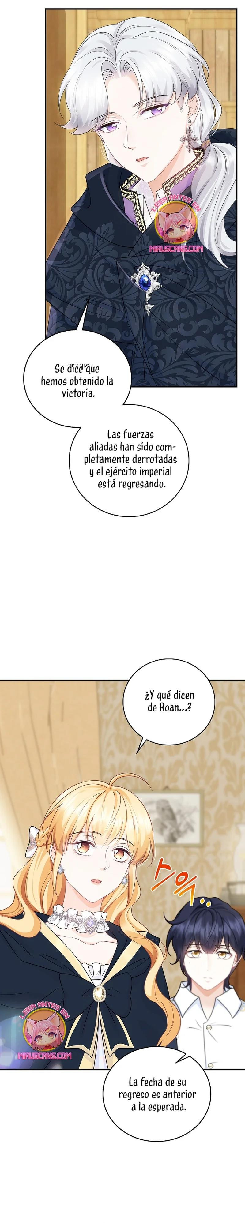 Cuando abrí los ojos, este no era mi cuerpo. ¿Dónde estoy? ¿Quién soy? Además, ¿quién es este hombre con aspecto hermoso que duerme a mi lado…? – El nombre de la señora es ‘ Delice Levanister’…. ¿Eh? ¡Increíble! ¡¿No es ese el nombre de la villana de la novela romántica que estaba obsesionada con leer hasta hace poco?! ¡¿Entonces, el hombre que más aprecio y amo es ‘ Roan von Banister ‘?! Roan es llamado el caballero azul del campo de batalla, pero es un protagonista secundario masculino que nació y se crió como un hijo ilegítimo. Un hombre lamentable cuya vida es destrosada incluso por la protagonista femenina. Roan, que sufre tanto, se suponía que debía cuidarlo bien… ¿Por qué pretendí ser una villana que lo torturó y finalmente se divorció de él? No, no puedo seguir el curso que me llevará a la muerte. Haré feliz a Roan, así que por favor, amémonos.