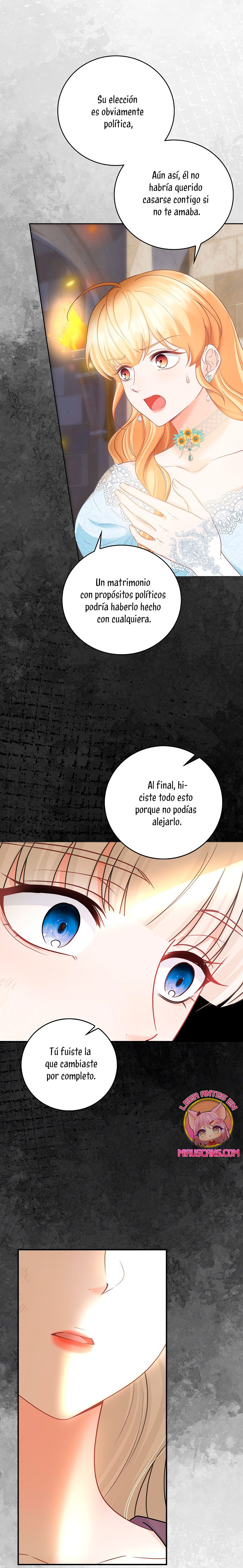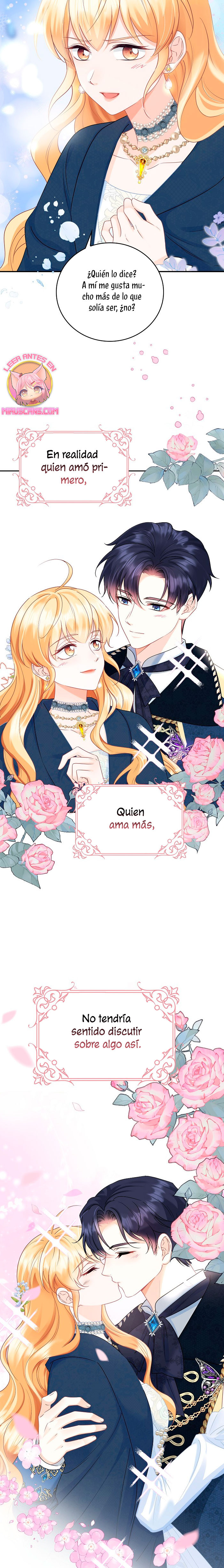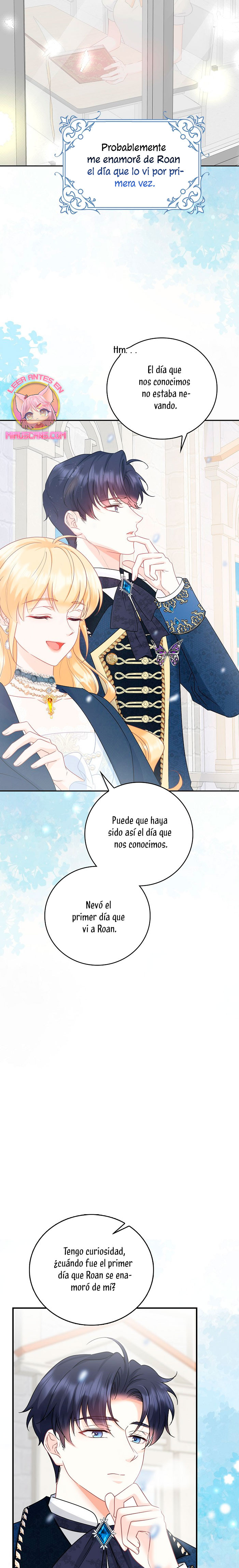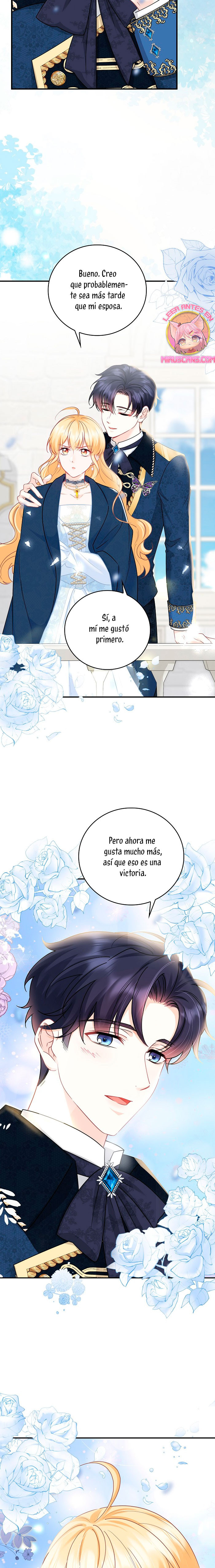 Cuando abrí los ojos, este no era mi cuerpo. ¿Dónde estoy? ¿Quién soy? Además, ¿quién es este hombre con aspecto hermoso que duerme a mi lado…? – El nombre de la señora es ‘ Delice Levanister’…. ¿Eh? ¡Increíble! ¡¿No es ese el nombre de la villana de la novela romántica que estaba obsesionada con leer hasta hace poco?! ¡¿Entonces, el hombre que más aprecio y amo es ‘ Roan von Banister ‘?! Roan es llamado el caballero azul del campo de batalla, pero es un protagonista secundario masculino que nació y se crió como un hijo ilegítimo. Un hombre lamentable cuya vida es destrosada incluso por la protagonista femenina. Roan, que sufre tanto, se suponía que debía cuidarlo bien… ¿Por qué pretendí ser una villana que lo torturó y finalmente se divorció de él? No, no puedo seguir el curso que me llevará a la muerte. Haré feliz a Roan, así que por favor, amémonos.