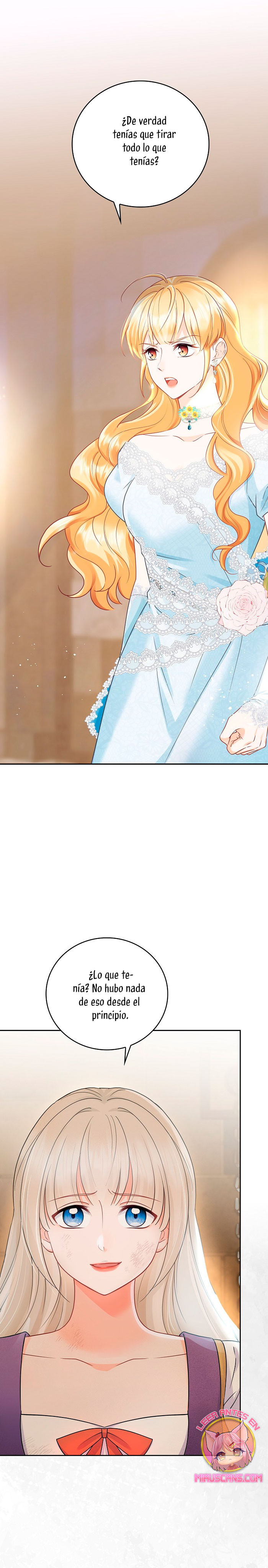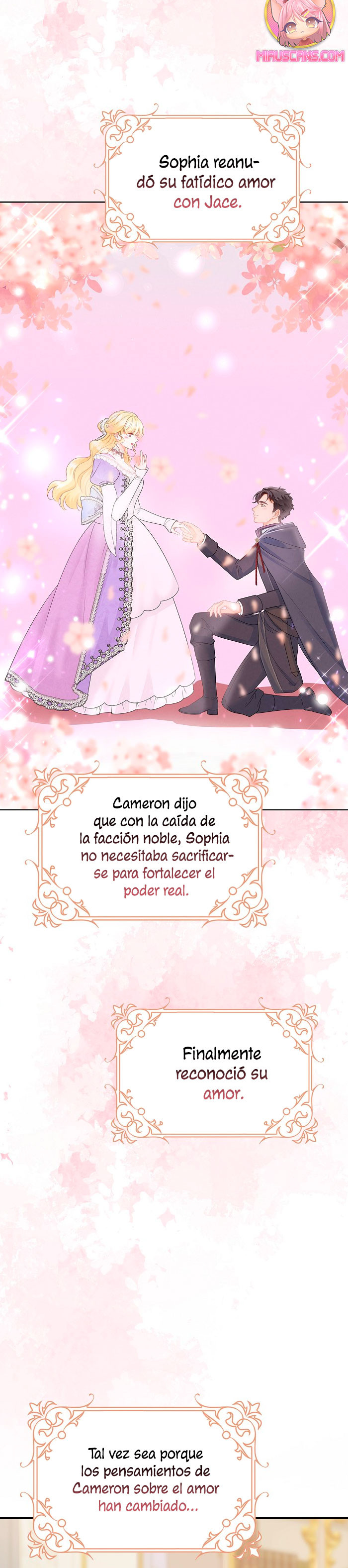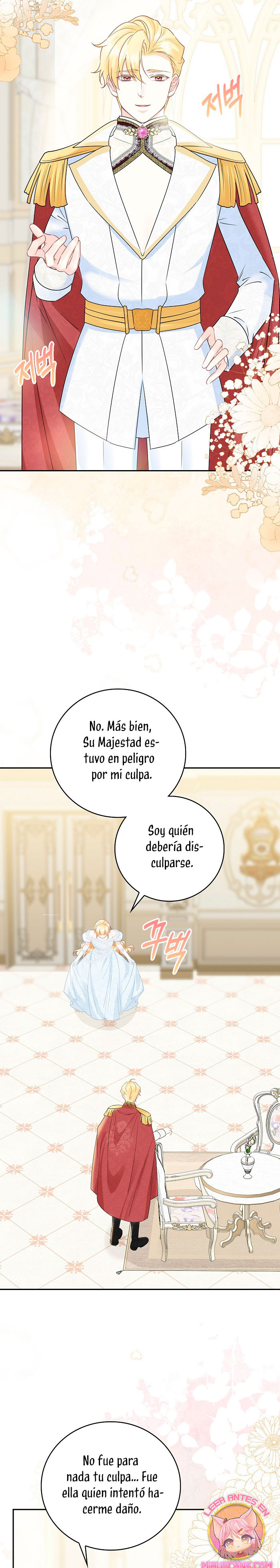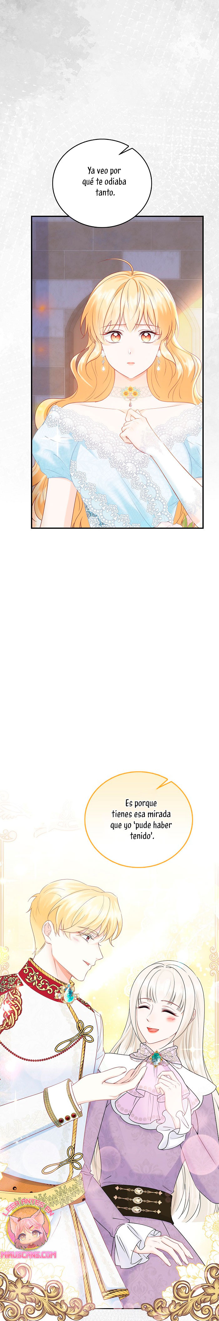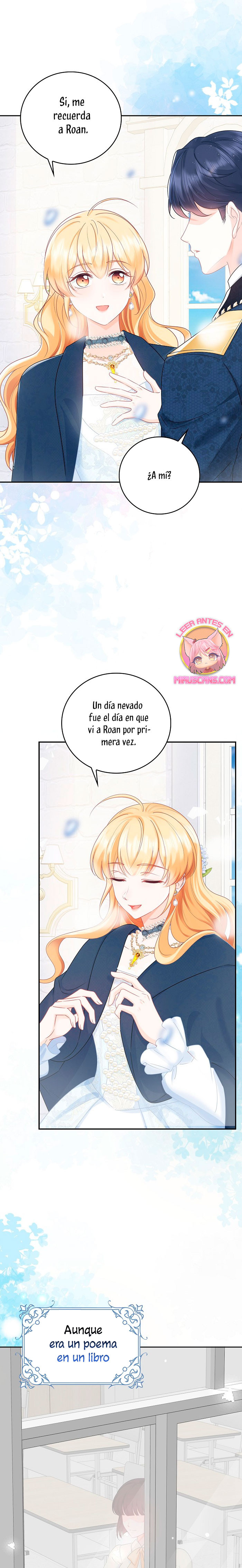Cuando abrí los ojos, este no era mi cuerpo. ¿Dónde estoy? ¿Quién soy? Además, ¿quién es este hombre con aspecto hermoso que duerme a mi lado…? – El nombre de la señora es ‘ Delice Levanister’…. ¿Eh? ¡Increíble! ¡¿No es ese el nombre de la villana de la novela romántica que estaba obsesionada con leer hasta hace poco?! ¡¿Entonces, el hombre que más aprecio y amo es ‘ Roan von Banister ‘?! Roan es llamado el caballero azul del campo de batalla, pero es un protagonista secundario masculino que nació y se crió como un hijo ilegítimo. Un hombre lamentable cuya vida es destrosada incluso por la protagonista femenina. Roan, que sufre tanto, se suponía que debía cuidarlo bien… ¿Por qué pretendí ser una villana que lo torturó y finalmente se divorció de él? No, no puedo seguir el curso que me llevará a la muerte. Haré feliz a Roan, así que por favor, amémonos.