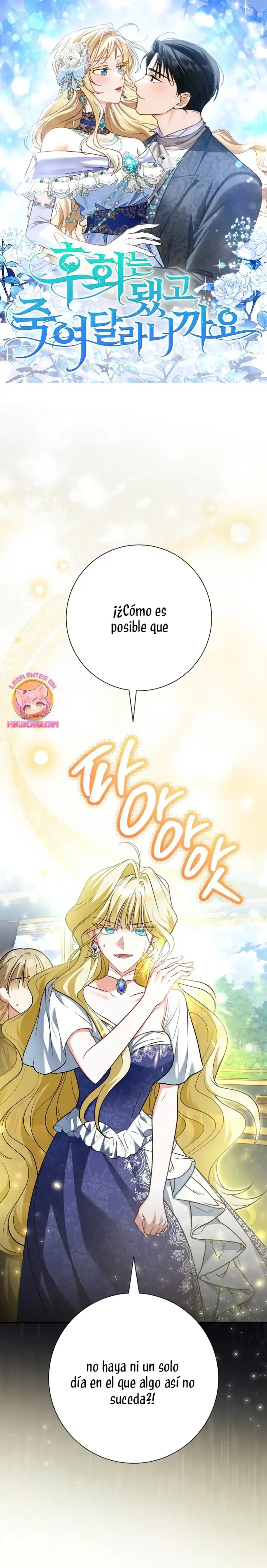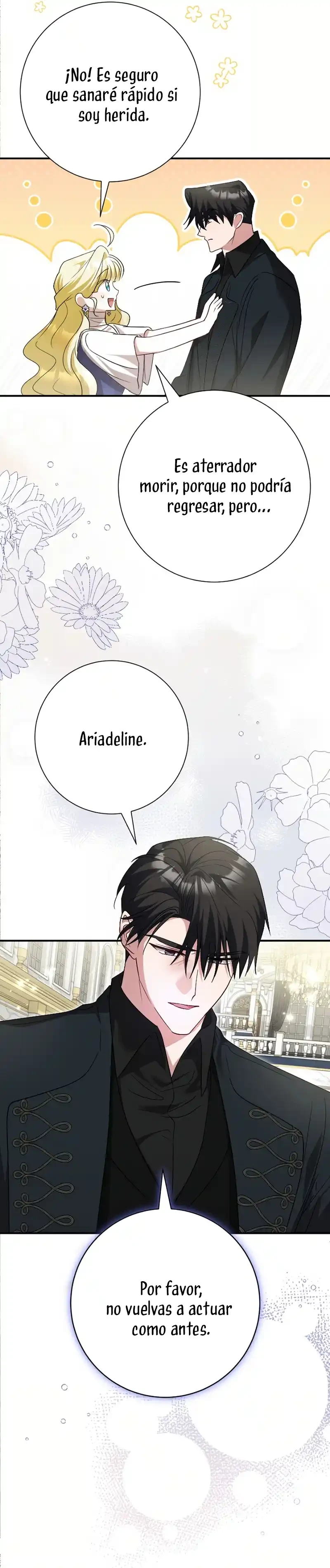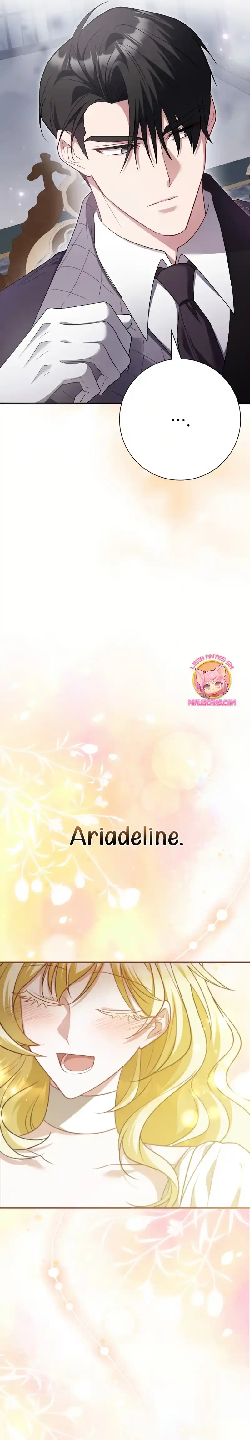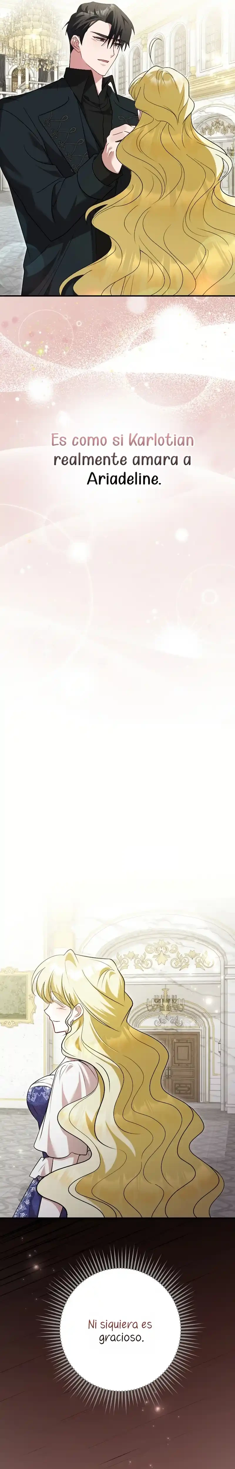 La cantante Ahn Hyein, quien perdió su voz en un accidente de tráfico, pierde las ganas de vivir y decide quitarse la vida… Al abrir los ojos, se encuentra en el mundo de la novela que había leído antes de morir. El personaje en el que Hyein se ha reencarnado es la villana del libro, Ariadelin. Y no solo eso, sino que se reencarnó justo después de que los protagonistas tuvieran su final feliz, en el momento en que Ariadelin fue condenada. Desesperada por no haber podido cambiar su destino ni siquiera dentro de la novela, decide quitarse la vida una vez más… “Jamás permitiré que mueras.” Karlottian, el exesposo de Ariadelin que la odiaba profundamente en la novela, y quien estaba enamorado de la santa Dorothea, ¡ha comenzado a actuar de forma extraña!